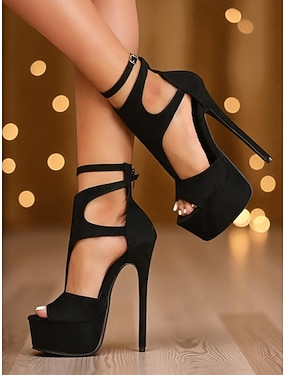 Escarpins à plateforme pour femmes - sandales à plateforme haute et bout ouvert avec bride cheville ajourée, style sexy pour les soirées &événements du club