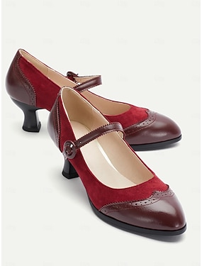 Escarpins Mary Jane en cuir bordeaux et marron d'inspiration vintage pour femmes, parfaits pour le travail et les occasions spéciales