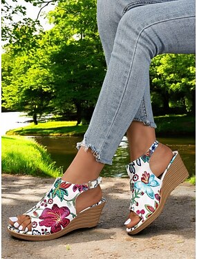 sandales compensées à imprimé floral pour femmes – sandales vibrantes et élégantes pour les événements en plein air, idéales pour la mode estivale décontractée