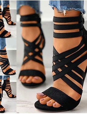 sandales à talons hauts à lanières noires pour femmes – bout ouvert, design à talon aiguille avec fermeture éclair au dos, parfaites pour les fêtes, les mariages et les événements en soirée