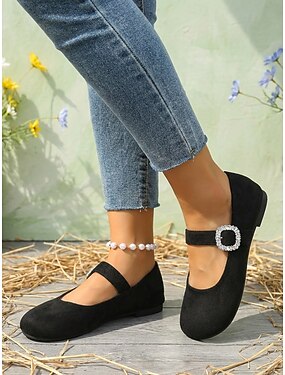 Ballerines Mary Jane pour femmes, couleur café, coupe large – ballerines confortables à bout rond et boucle strass, idéales pour le travail, les promenades quotidiennes et les loisirs en extérieur.