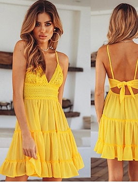 Femmes Mini Robe Robe Blanche Robe de remise des diplômes Robe en Dentelle Robe Nuisette Mode Moderne Anniversaire Remise des Diplômes Date Coupe régulière Uni Sans manches Bretelles spaghetti Jaune