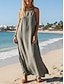 Femmes Robe Longue Maxi Robe Coton mélangé Robe fourreau Robe d'Été Robes en coton et lin Mode Basique Moderne Quotidien Plage Week-end Coupe régulière Uni Sans manches Bretelles spaghetti Noir