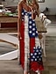 Robe maxi patriote pour femmes du jour de l'indépendance robe en A robe de nuit vacances décontractée quotidienne de fête graphique drapeau sans manches col en V bretelles spaghetti blanc rouge bleu