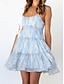 Femmes Mini Robe Robe trapèze Robe Nuisette Robe à épaules dénudées Vacances Occasionnel Plage Sortir Coupe régulière Fleuri Graphique Sans manches Col en V Bretelles spaghetti Bleu Blanche Bleu Roi