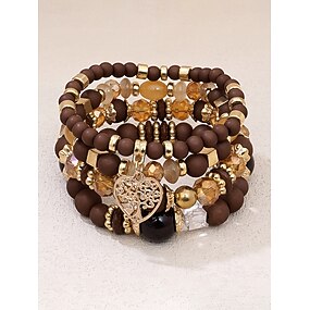 Ensemble de bracelets bohèmes pour femmes en acrylique et alliage – plusieurs couleurs, breloque cœur, parfait pour la Saint-Valentin et au quotidien