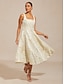 Ligne A Longueur cheville Robes de mariée Robes pour enterrement de vie de jeune fille robe de mariée ancien Années 1940 / 1950 Petites Robes Blanches Bretelles Classiques Col carré Remise des