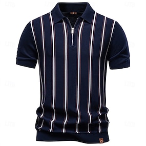 Homme Polo Polo à fermeture éclair Occasionnel Quotidien Col de chemise Manche Courte Mode Basique Bandes verticales Quart de zip Respirable Été Printemps Coupe régulière Noir Blanche bleu marine Polo