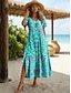 Robe Midi Femme Robe en Lin Robe d'Été Robe Ample A Ligne Vacances Casual Boho Plage Sortie Coupe Lousse Graphique Géométrique Sans Manches Col Ras du Cou Bleu Rouge Marron Vert Été Printemps