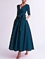 Robe de Cocktail A-Line Élégante Robe Invitée de Mariage Longueur Thé Manches 3/4 Col en V Poche Satin avec Nœud(s) Robes