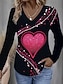 Femmes T-shirt Cœur Graphique ancien Élégant Classique manche longue Col en V Hauts Réguliers Quotidien Imprimé Rose Claire Printemps Automne