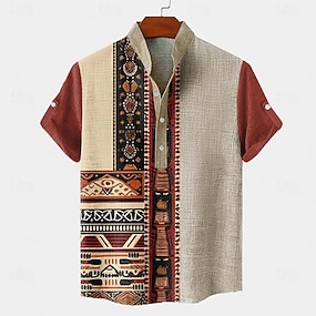 Homme Bloc de Couleur Tribal Ethique / Africain Chemise Chemise boutonnée Manche Courte Vintage Rétro Fête Décontracté Quotidien Été Printemps Col montant Col Henley Impression 3D Chemise en lin Noir