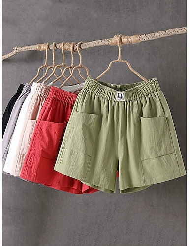 Femmes Short en coton et lin Chinos Shorts Shorts d'été Vacances Mode Streetwear Court Taille haute Uni Avec Poches Taille Élastique Respirabilité Confortable Non Elastique Quotidien Vacances Rue
