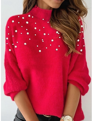Femmes Chemisier Couleur Unie Élégant Occasionnel manche longue Col montant Hauts Réguliers Quotidien Perlé Noir Jaune Rose Claire Rouge Marron Printemps Automne Hiver
