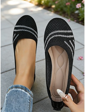 Ballerines noires en maille douce pour femmes – chaussures confortables, respirantes, légères et extensibles, idéales pour le bureau, les trajets quotidiens, les voyages, le shopping et le quotidien.