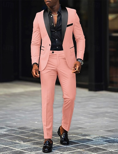 Homme Blazer Costumes Affaires Cocktail Fête de mariage 2 Pièces Mode Occasionnel Printemps Automne Polyester Bloc de Couleur Avec Poches Boutons Confortable Simple Boutonnage veste Gris foncé Noir