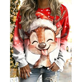 Femmes Pull Graphique Renne Noël laid Chaud Classique Occasionnel manche longue Col ras du cou Hauts Réguliers Maison Rue Tenue Quotidienne Imprimé Rose Claire Rouge Bleu Vert Automne Hiver
