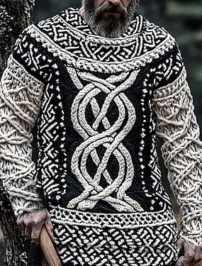 Homme Viking Pull Tricots Col Rond Rétro Vintage Occasionnel Quotidien Impression 3D Tricot Garder au chaud manche longue Printemps Automne Hiver Noir Rouge Vert