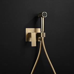 Pulvérisateur de bidet dissimulé, 2 fonctions, débit d'eau, bouton de valve en laiton, mélangeur froid/chaud réglable, tuyau en pvc brossé or gris blanc