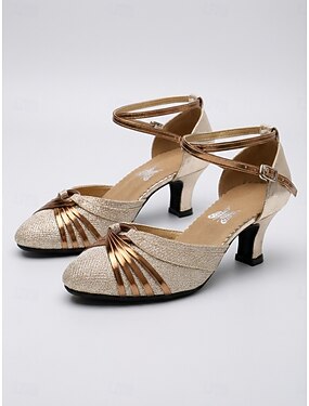 Chaussures de danse latine dorées pour femmes - à brides et talon mi-haut, style salle de bal &Chaussures de salsa pour la pratique de la danse, les spectacles et les danses latines