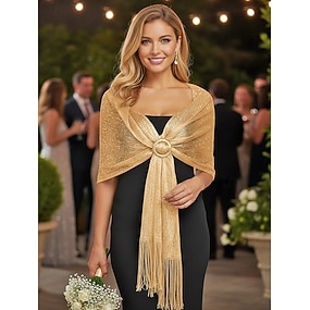 Écharpe en polyester pour femme, ornée de boutons en acrylique, disponible en plusieurs couleurs, idéale pour les mariages et les soirées.