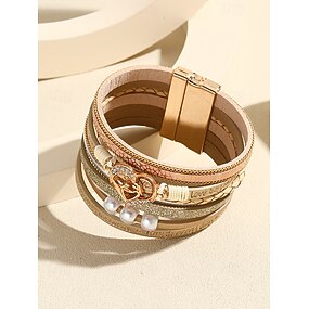 Bracelet magnétique en similicuir pour femme – Bracelet manchette en alliage avec breloque cœur et perle et texte inspirant, bijou tendance style bohème, idéal pour la fête des mères, les anniversaires et les tenues décontractées.