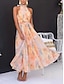 Robe de Quinceanera A-Line Robe Élégante Invitée de Mariage Longueur de Sol Sans Manches Col Halter Chiffon Dos Nu avec Impression Florale Robe Invitée de Mariage