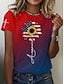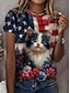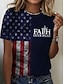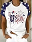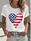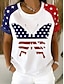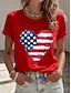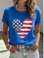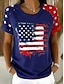 Jour de l'Indépendance Américaine Femmes T-shirt Imprimé Drapeau Américain Élégant Classique Occasionnel Manche Courte Col rond Hauts Réguliers Quotidien Sortir Week-end Bleu Noir Blanche Rouge bleu