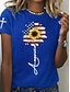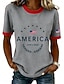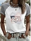 Jour de l'Indépendance Américaine Femmes T-shirt Imprimé Graphique Lettre Drapeau Américain Élégant Classique Occasionnel Manche Courte Col ras du cou Hauts Réguliers Quotidien Bleu Noir Blanche Rouge