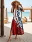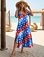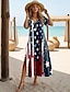 Robe maxi patriote pour femmes du jour de l'indépendance robe en A robe de nuit vacances décontractée quotidienne de fête graphique drapeau sans manches col en V bretelles spaghetti blanc rouge bleu