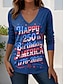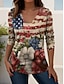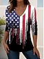 T - Shirt Patriote du Jour de l'Indépendance Femme Imprimé Graphique Drapeau Américain Vintage Élégant Décontracté Manche Longue Col en V Hauts Quotidien Week - end Bleu Blanc Rouge Été Printemps