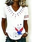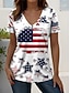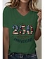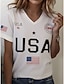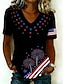 Jour de l'Indépendance T-Shirt Patriote pour Femmes Graphique Drapeau Vintage Élégant Classique Manches Courtes Col V Hauts Normaux Quotidien Week-end Imprimé Noir Blanc Jaune Bleu Été Printemps