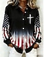 Jour de l'Indépendance Américaine Femmes Chemise Boutons Imprimé Graphique Drapeau Américain ancien Élégant Moderne manche longue Col de chemise Hauts Réguliers Quotidien Travail Bleu Blanche Rouge