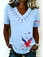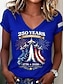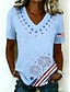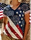 Jour de l'Indépendance T-shirt Patriote pour Femme Graphique Drapeau Vintage Chic Classique Manches Courtes Col V Hauts Quotidiens Weekend Imprimé Blanc Bleu Été Printemps