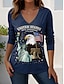 Jour de l'Indépendance Américaine Femmes T-shirt Imprimé Graphique Drapeau Américain Élégant Classique Occasionnel manche longue Col en V Hauts Réguliers Quotidien Sortir Week-end Bleu bleu marine