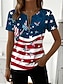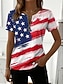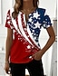 Journée de l'Indépendance Chemise T-Shirt Patriote pour Femme Imprimé Graphique Drapeau Américain Vintage Élégant Classique Manches Courtes Col en V Tops Quotidien Blanc-Bleu Blanc Rouge Bleu Été