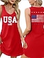 Journée de l'Indépendance Femmes Mini Robe Robe Décontractée Robe Nuisette Mode Classique Moderne Extérieur Vacances Sortir Coupe régulière Drapeau Américain Sans manches Col en V Noir Rouge Ét