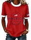 Jour de l'Indépendance Américaine Femmes T-shirt Imprimé Graphique Lettre Drapeau Américain Élégant Classique Occasionnel Manche Courte Col ras du cou Hauts Réguliers Quotidien Rouge Été Printemps