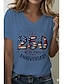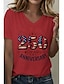 Jour de l'Indépendance Américaine Femmes T-shirt Imprimé Graphique Drapeau Américain ancien Élégant Classique Manche Courte Col en V Hauts Réguliers Quotidien Bleu Blanche Gris anthracite Rouge et