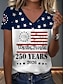 T-shirt patriotique pour femmes pour le jour de l'Indépendance anniversaire des 250 ans américain impression graphique drapeau drapeau américain vintage stylé classique à manches courtes col en V