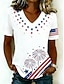 Jour de l'Indépendance T-shirt Patriote pour Femme Graphique Drapeau Vintage Chic Classique Manches Courtes Col V Hauts Quotidiens Week-end Imprimé Noir Blanc Gris Été Printemps