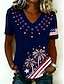 Jour de l'Indépendance Américaine Femmes T-shirt Imprimé Graphique Drapeau Américain ancien Élégant Classique Manche Courte Col en V Hauts Réguliers Quotidien Noir Blanche bleu marine Bleu clair Ét