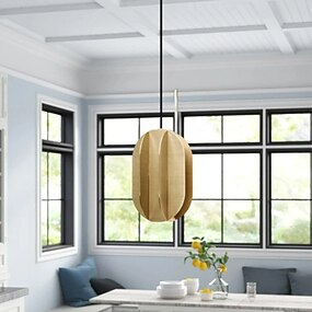 Lustre LED , Lanterne suspendue design style artistique en bois clair , inspiré de la nature adapté à la cuisine bar cafétéria , blanc chaud + blanc + blanc froid, 40/50/60 cm 110-240 v