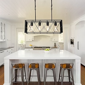 led pendentif lumière 25 pouces 4 lumière ferme contemporaine lustres linéaires noir industriel vintage îlot de cuisine cage en métal plafonniers pour salon salle à manger