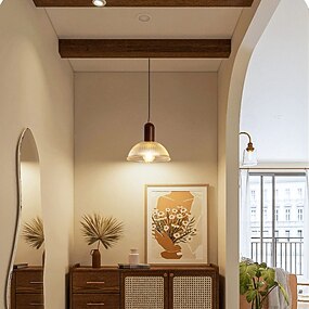 Suspension LED 28 cm 1 lumière en bois rétro ferme moderne e26/e27 suspension lanterne design plafonnier 5 W luminaire pour îlot de cuisine salle à manger couloir chambre salon 110-240 V