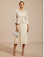 Ensemble robe femme, veste blazer confortable, brodée de sequins, élégante, à motifs floraux, coupe formelle boutonnée, col rond classique, manches 3/4, beige, printemps-automne