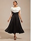 Femmes Robe Midi Robe trapèze Robe à Volants Élégant Fête cocktail Extérieur Soirée robe demoiselle d honneur Dentelle Patchwork Mince Couleur Unie Manche 3/4 Épaules Dénudées Noir bleu marine