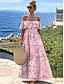 Robe casual robe boheme Robe imprimée Femme robe longue Floral Vêtement de rue Décontractées Extérieur du quotidien Vacances Imprimer Manche Courte Epaules Dénudées Robe Standard Noir Rose Claire Bleu
