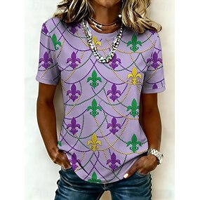 Carnaval Mardi Gras Femmes T-shirt Imprimé Graphique Etoile Rayé Élégant Classique Occasionnel Manche Courte Col ras du cou Col rond Hauts Réguliers Quotidien Sports Sortir Blanche Violet Ét