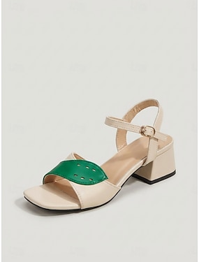 beige pour femmes &Sandales habillées à motif de feuille verte – chaussures confortables à talon bloc pour le quotidien &vêtements de vacances